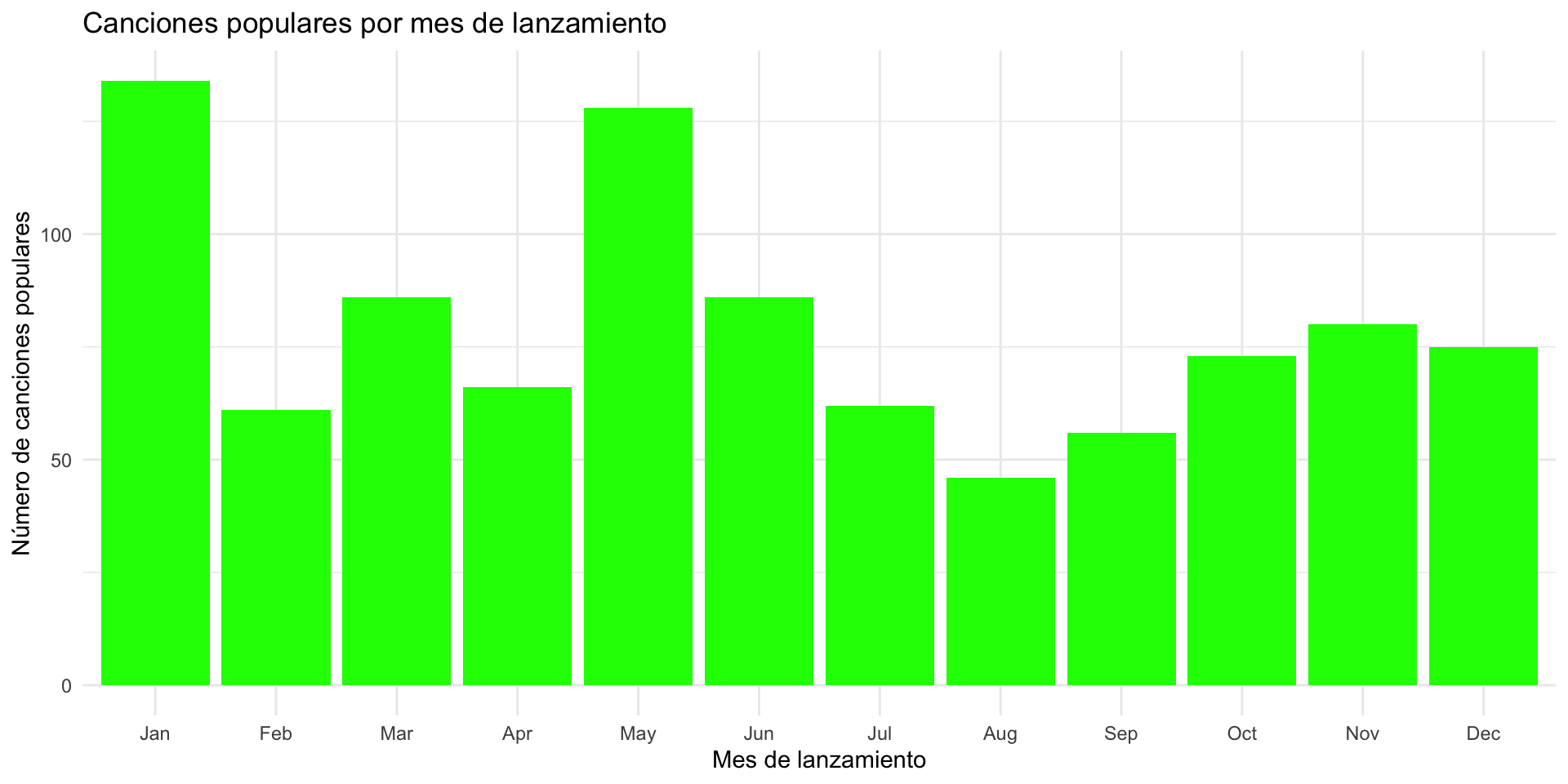 Método: Creación de un gráfico de barras para mostrar la cantidad de canciones populares lanzadas cada mes.